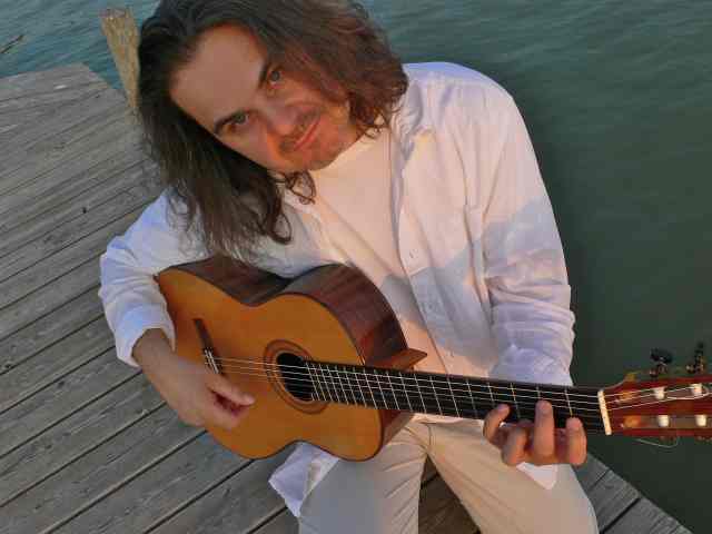 zum einem scheint sich dieses "atmos" im bauch seiner gitarre zu befinden, ein anderesmal in den gedanken seiner virtuosen hände. oder ist dieser magische ort gar in den herzen der zuhörer verborgen ? ist es ein "tempel im ohr", wie rilke ihn beschrieben hat - oder entsteht er nur durch eine bewegung der schönheit - durch fliessen und schweben ?